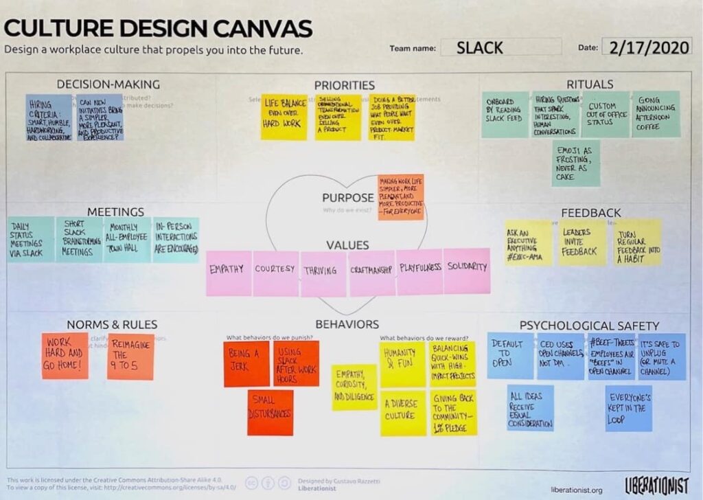 The Culture Design Canvas was created by Gustavo Razzetti (Copyright © 2019- 2023 by Gustavo Razzetti and licensed under the Creative Commons Attribution 4.0 International License. You can use it for free but need to follow the following: